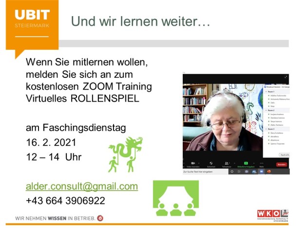 Sie wolle sehen, wie das abläuft, und ob es wirklich Emotionen und Dynamik im ZOOM geben kann? Hier der Link zum Beispielrollenspiel.